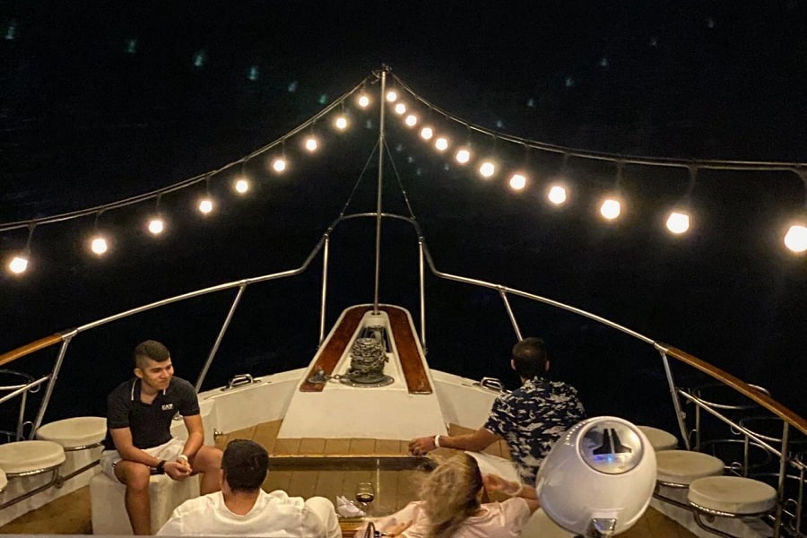 This spot is ideal for taking photographs, toasting as a couple, or simply contemplating the majesty of Cartagena from the water. Undoubtedly, the most romantic moment of the night.