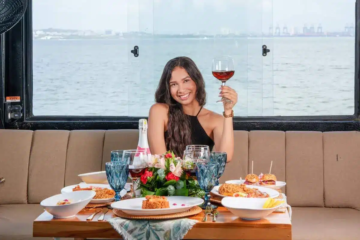 Durante el recorrido marítimo, la experiencia se enriquece con un show de baile en vivo y DJ set, creando un ambiente festivo y sofisticado, ideal para parejas, grupos de amigos y celebraciones especiales.